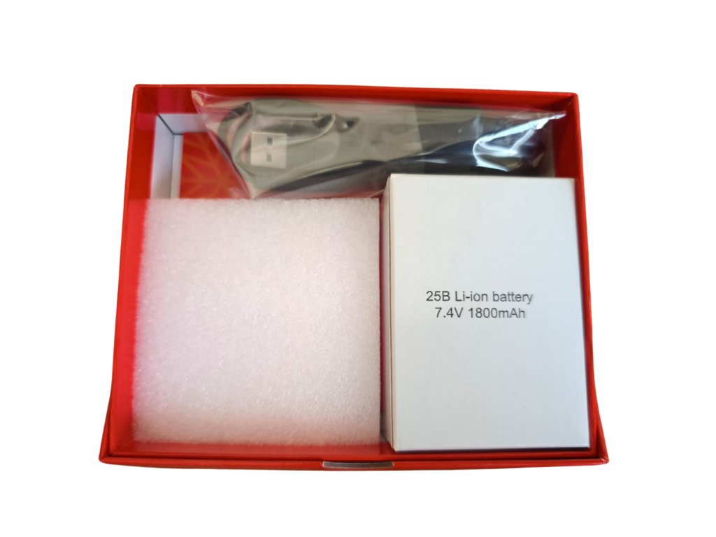 - 2ks dobíjacích batérií- Nabíjačka s dvoma konektormi pre každú topánku