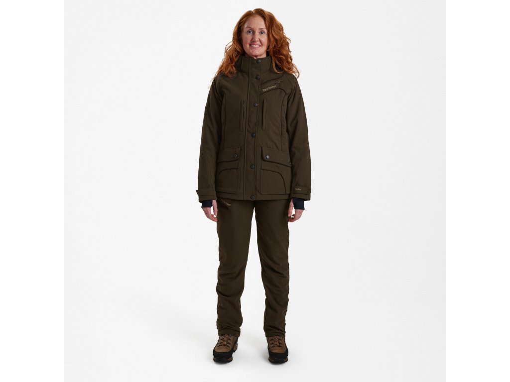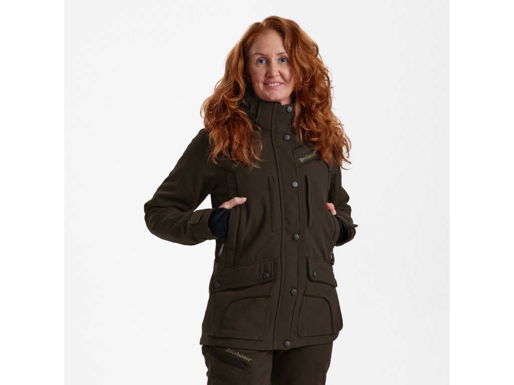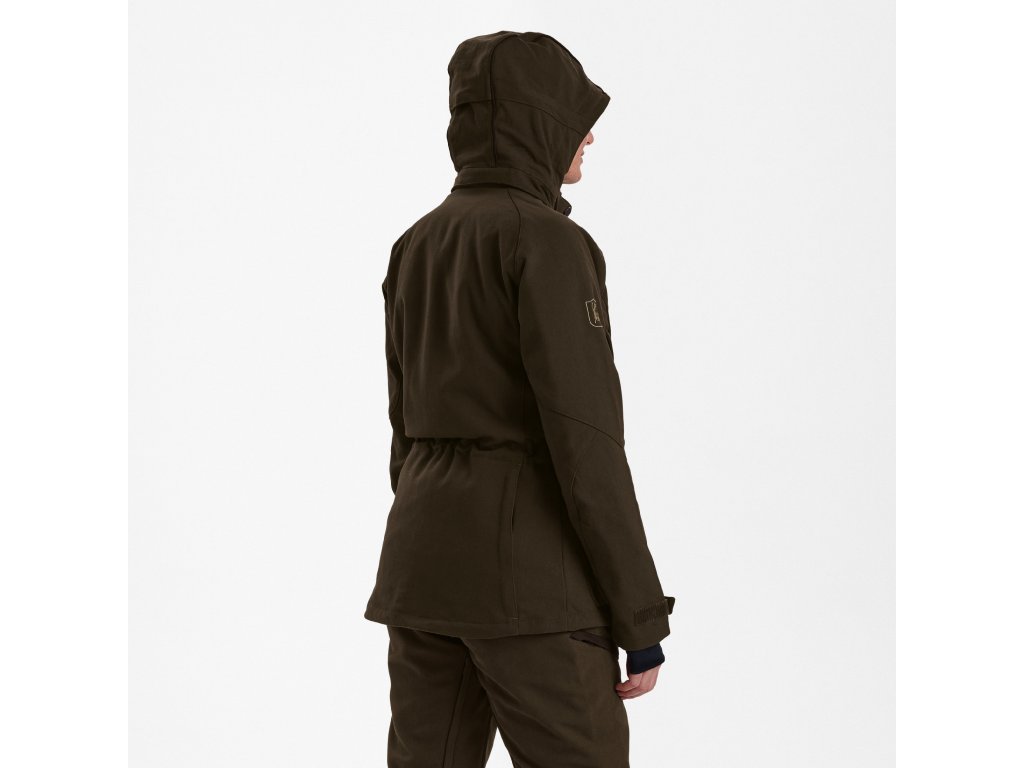 Nehľadajte nič iné ako bundu Lady Mary Extreme, ktorá vás ochráni pred poveternostnými vplyvmi. Táto nepremokavá, vetruodolná a vodoodpudivá bunda, vyrobená zo spevneného, extra pevného a odolného materiálu, sa stane vašou prvou voľbou, keď sa terén a počasie stanú ešte náročnejšími. Hlavný centrálny zips je obojsmerný YKK, ktorý umožňuje jednoduchý prístup k spodnej bielizni. Odnímateľná kapucňa, nastaviteľné manžety, pás a spodný diel, manžety proti vetru a tvarované lakte sú len začiatkom k dosiahnutiu dokonalého strihu. Bunda Lady Mary Extreme ponúka množstvo úložných riešení, medzi ktoré patria dve náprsné vrecká, dve vrecká na ohrievanie rúk a vrecko na lov, všetky so skrytými zipsami, ako aj dve predné vrecká s klopami a dve vnútorné vrecká, ktoré vám poskytnú dokonalý zážitok z nosenia bez rúk. Túto bundu dopĺňa popruh na pripevnenie vysielačky, elastický popruh na anténu, sieťovaná podšívka s laminovanou membránou a pre prípad, že sa stanete aktívnejšími, obojsmerný zips pod pazuchami pre vetranie.Dodatočné parametre