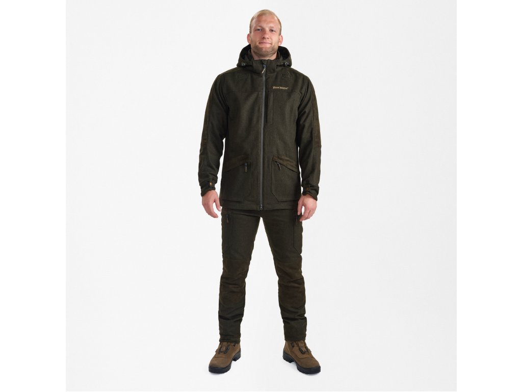 Bunda Tatra bola premyslene navrhnutá pre poľovníkov a spája tradičný štýl s detailmi z imitácie semišu s funkčným dizajnom pre lepší výkon. Vďaka vrecku na vysielačku a množstvu bezpečných úložných priestorov na poľovnícke potreby v podobe náprsného, predného, spodného a vnútorného vrecka na zips a vrecku na lov so skrytým zipsom má poľovník všetko, čo potrebuje, poruke. Bunda je vyrobená z najjemnejšieho materiálu zo zmesi vlny, prirodzene reguluje teplotu a je tichá s priedušnou sieťovanou podšívkou pre zvýšené pohodlie, ktoré je ideálne pre aktívnych poľovníkov, ktorí sa vydávajú na lov v chladnom počasí. Predtvarované lakte, nastaviteľné lemy rukávov a sťahovací lem ponúkajú extra mobilitu a prispôsobené strihanie. Ideálna trojsezónna bunda, v ktorej budete mať úžitok z prirodzeného tepla materiálu zo zmesi vlny v kombinácii so zvýšenou ochranou pred poveternostnými vplyvmi, ktorú zabezpečuje vodoodpudivá úprava.Dodatočné parametre