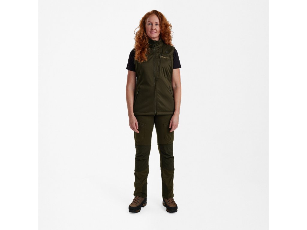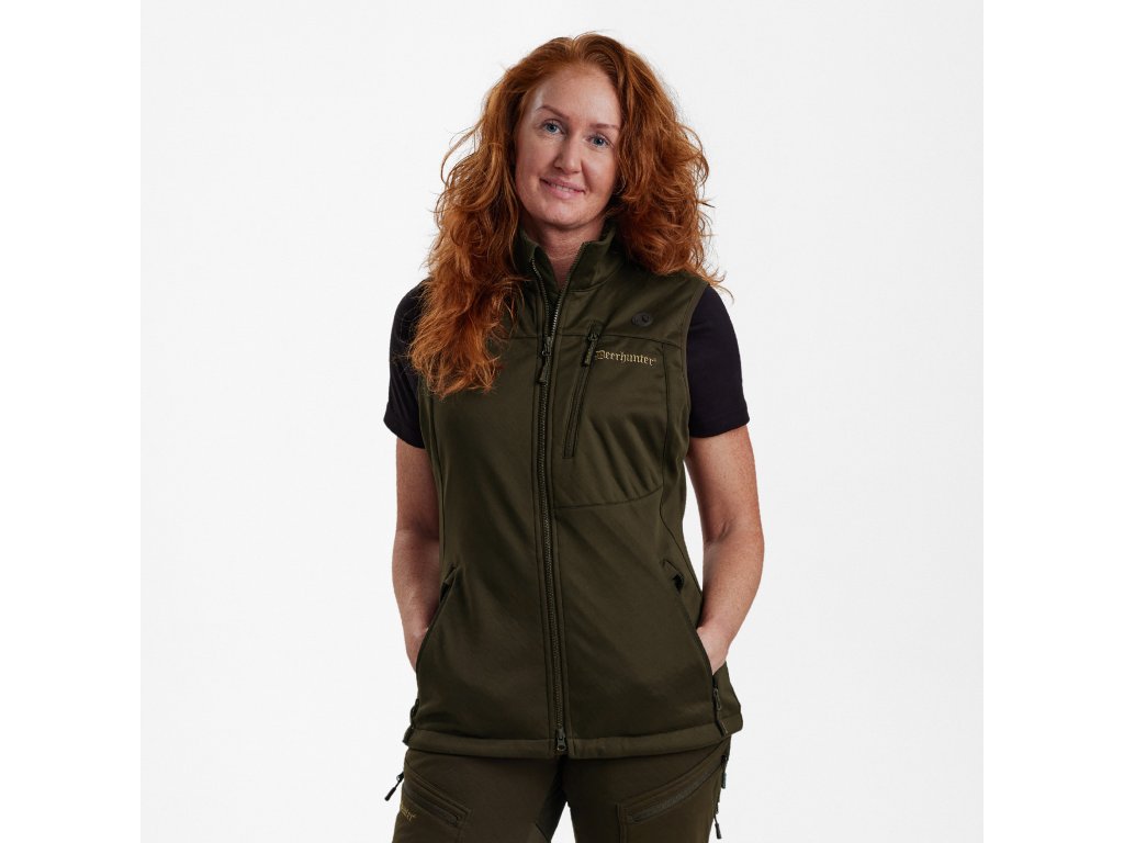 Dámska softshellová vesta DEERHUNTER Excape je súčasťou celoročnej, ľahkej, vrstvenej kolekcie Excape, ktorá je dostupná v jednofarebnom prevedení a revolučnej kamufláži Realtree EXCAPE™. Táto softshellová vesta je mäkká, tichá, vodeodolná a vetruodolná s technickou membránou DEERHUNTER Stormliner® na vybraných miestach a zároveň vysoko priedušná. Je plná funkčných prvkov, je vyrobená pre všetky druhy lovu a navrhnutá tak, aby odolala prírodným silám. S elastickým panelom v páse a nastaviteľným lemom so šnúrkou ponúka lichotivý a ženský strih. Kolekcia EXCAPE je vhodná pre všetky ročné obdobia a možno ju vrstviť podľa vášho preferovaného štýlu lovu.Dodatočné parametre