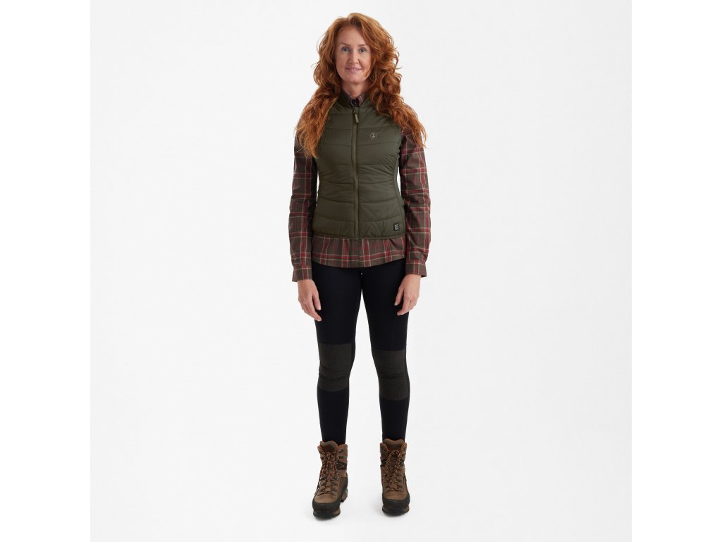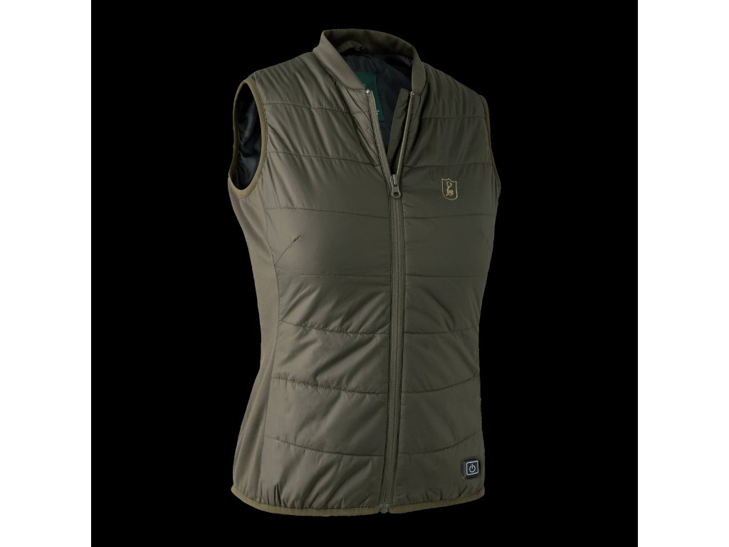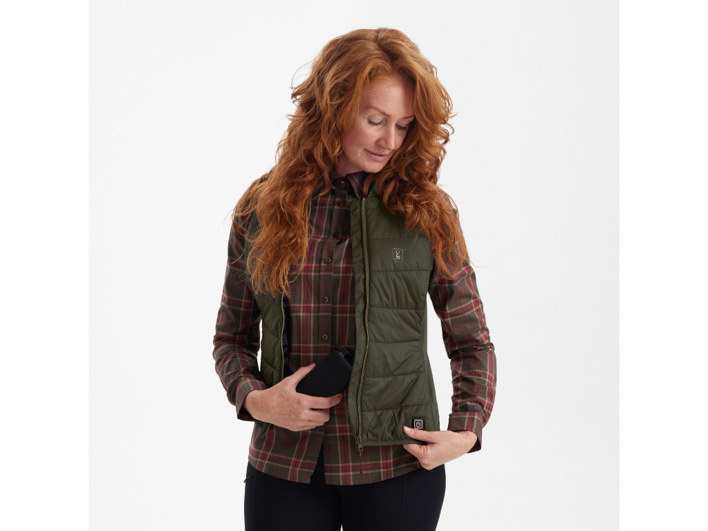 Vnútorná vesta DEERHUNTER Lady Heat má integrovaný systém HEAT, ktorý sa aktivuje na ľavej strane vesty jemným stlačením. Hustota tepla je nastaviteľná a je viditeľná na vstavanom LED svetle, ktoré indikuje tri úrovne tepla vesty. Vesta sa zapína na zips na prednej strane a je vyrobená z flexibilnej tkaniny na oboch stranách, čo v kombinácii s tenkým elastickým lemom poskytuje vysoký stupeň voľnosti pohybu a pohodlia.Dodatočné parametre