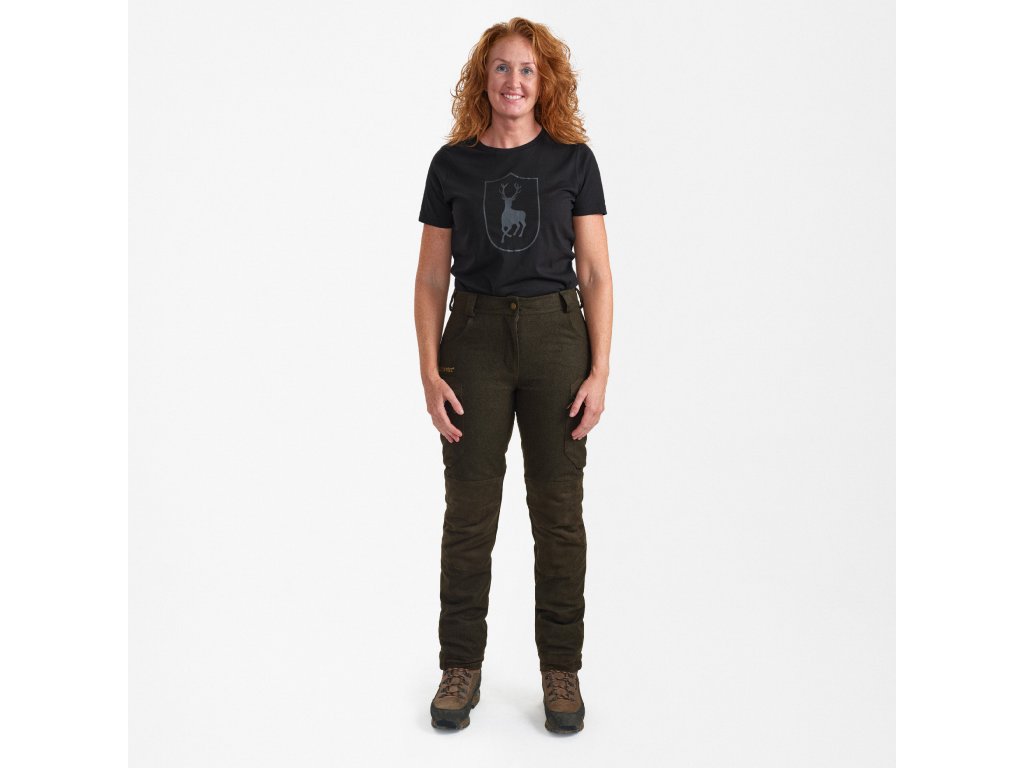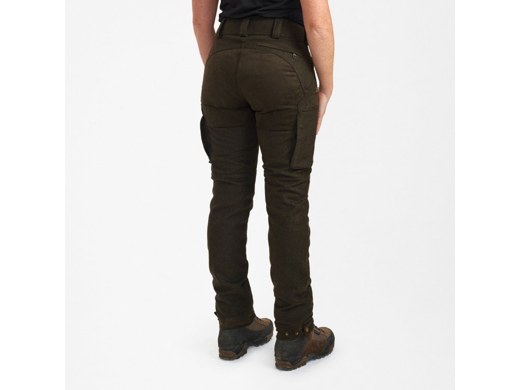 Vychutnajte si prirodzené teplo a reguláciu teploty vďaka materiálu zo zmesi vlny v kombinácii s pohodlím priedušnej sieťovanej podšívky s nohavicami Lady Tatra. Sú ideálne na trojročné nosenie a vďaka vodeodolnej úprave vám zaručia sucho a pohodlie za všetkých podmienok. Tieto klasické, tiché poľovnícke nohavice s detailmi z imitácie semišu, ktoré sú súčasťou série Tatra, ktorá kombinuje pohodlie s estetikou, sú plné praktických prvkov, ako je vrecko na nôž a priestranná priehradka a predné vrecká na bezpečné uloženie všetkých vašich poľovníckych nevyhnutností na cestách. Vďaka nastaviteľným popruhom na členkoch nie je prechádzanie vlhkými, mokrými a močaristým podmienkami problémom. Využite prírodné vlastnosti vlny v kombinácii s funkčným dizajnom DEERHUNTER s nohavicami Lady Tatra – poľovníckymi nohavicami, na ktoré sa môžete skutočne spoľahnúť.Dodatočné parametre