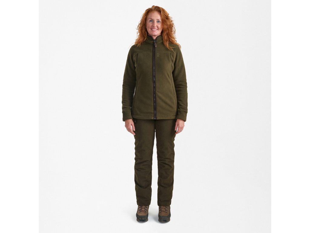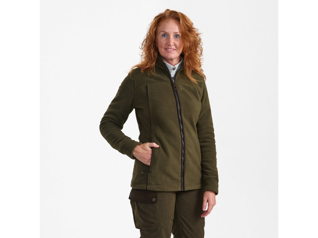 Flísová bunda Lady Eagle je ideálnym flísom na outdoorové aktivity a je súčasťou poľovníckej série Eagle. S elegantnými detailmi z imitácie semišu, ktoré odrážajú tradičnejší poľovnícky štýl, dopĺňa ostatné bundy a nohavice z tejto kolekcie. Jednoduchý elegantný dizajn s lichotivým ženským strihom, rebrované manžety a nastaviteľný lem so šnúrkou zaisťujú dobré padnutie, zatiaľ čo praktické vrecká na zips poskytujú dostatok úložného priestoru na všetky poľovnícke nevyhnutnosti. Táto praktická stredná vrstva s elastickým materiálom, ktorá je základným prvkom každého outdoorového šatníka, je ideálna na nosenie medzi sezónami ako vrchná vrstva, v teplejších mesiacoch alebo ako izolačná stredná vrstva na aktivity v chladnom počasí.Dodatočné parametre