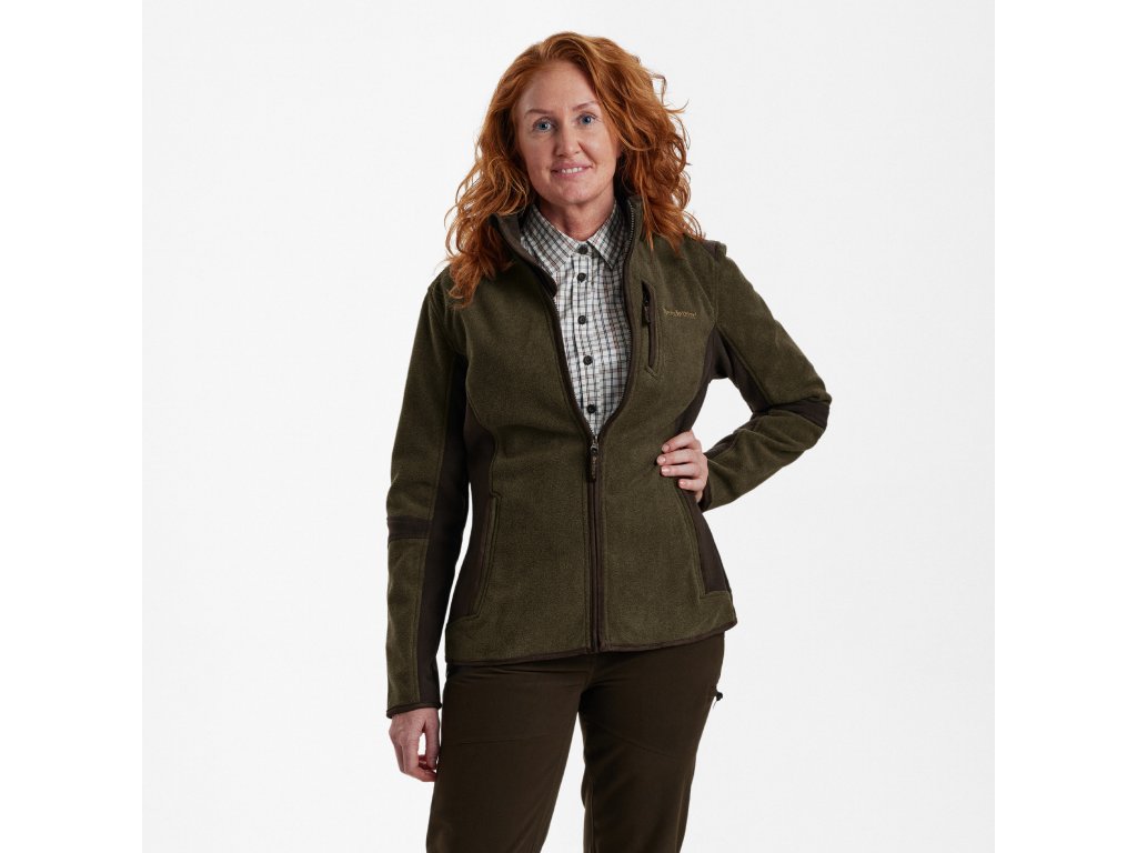 Flísová bunda Lady Pam Bonded Fleece je dodávaná s vrstvou DEERHUNTER Stormliner, ktorá zaisťuje, že je vetruodolná a priedušná; dve dôležité vlastnosti pre každú aktívnu ženu v prírode. Umelý semišový lem na krku, prednom zipse a rukávoch poskytuje pohodlné nosenie a štýlový vzhľad. Táto praktická bunda má niekoľko úložných priestorov s dvoma prednými vreckami, náprsným vreckom, veľkým vreckom na lov a dvoma vnútornými vreckami na bezpečné uloženie vašich cenných predmetov. Pod pazuchami sú vetracie otvory pre lepšie prúdenie vzduchu.Dodatočné parametre