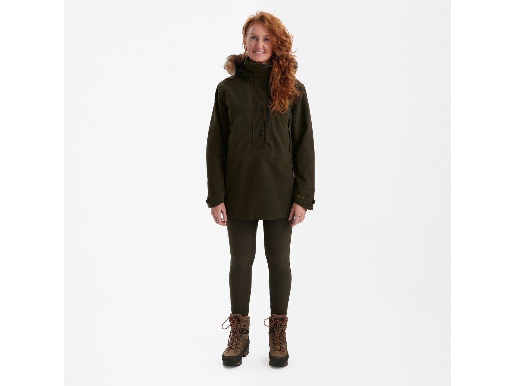 Predstavujeme priedušnú blúzku Lady Gabby, navrhnutú pre dámu, ktorá miluje pobyt v prírode. Táto blúzka je presne to, čo potrebujete na všetkých svojich expedíciách, teplá a praktická, stane sa vašou sezónnou nevyhnutnosťou. Zoznam toho, čo táto blúzka dokáže ponúknuť, je nekonečný; je vodeodolná, vetruodolná, nepremokavá a odolná voči tŕňom, chráni vás pred všetkými živlami, ktorým môže drsný terén zaútočiť. Vďaka elastickej tkanine, tvarovaným lakťom, nastaviteľným manžetám a predĺženej zadnej časti máte zaručené pohodlné nosenie. Túto blúzku sme vytvorili s množstvom úložných priestorov vrátane dvoch predných vreciek, dvoch vreciek na ohrievanie rúk a vrecka na vysielačku, všetky s nepremokavými zipsami. Táto blúzka má zips YKK ako hlavný centrálny zips a zipsy na každej strane pre ľahký prístup. Pre vašu anténu sme vytvorili zosilnený východ a elastický popruh. Doplnená nielen odnímateľnou kapucňou, ale aj odnímateľnou umelou kožušinou, neoprénovými manžetami proti vetru a nastaviteľným pásom, blúzka Lady Gabby stelesňuje ženský strih a štýl, o ktorý sa každá dáma usiluje.Dodatočné parametre