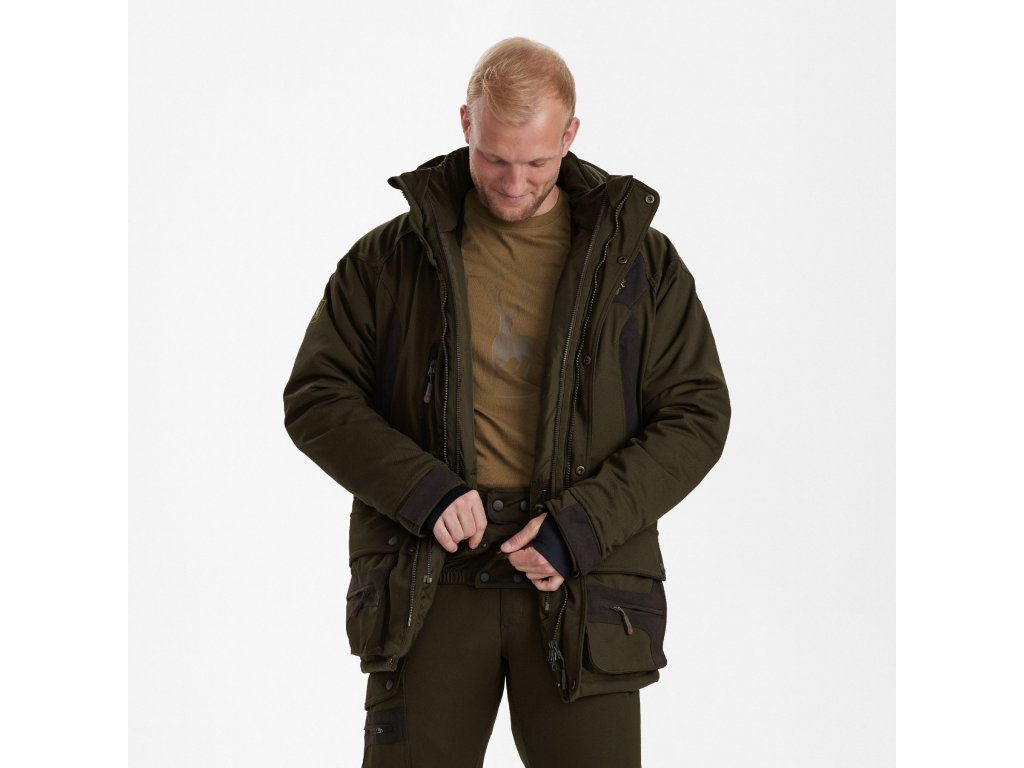 Bunda Muflon je súčasťou exkluzívnej poľovníckej série. Bunda obsahuje všetko, o čom si len môžete vysnívať. Bunda má membránu Deer-Tex®, ktorá zaisťuje, že udržíte vodu a vietor vonku, zatiaľ čo telo môže dýchať. Na membránu sa vzťahuje 5-ročná záruka. Pýši sa množstvom inteligentných prvkov – vodeodolné zipsy, nohavice s tvarovanými kolenami, štvorsmerne strečová tkanina a štýlový dizajn sú len niektoré z detailov, na ktoré sa môžete tešiť. Zdolajte najvyššie vrcholy v bunde Muflon!Dodatočné parametre