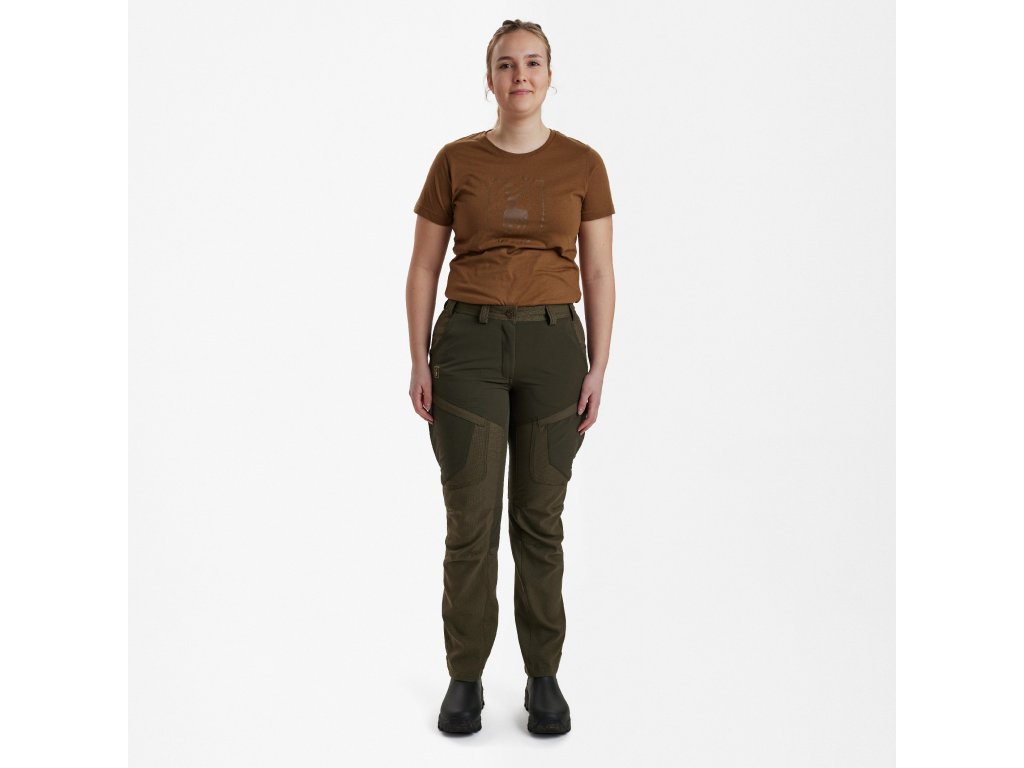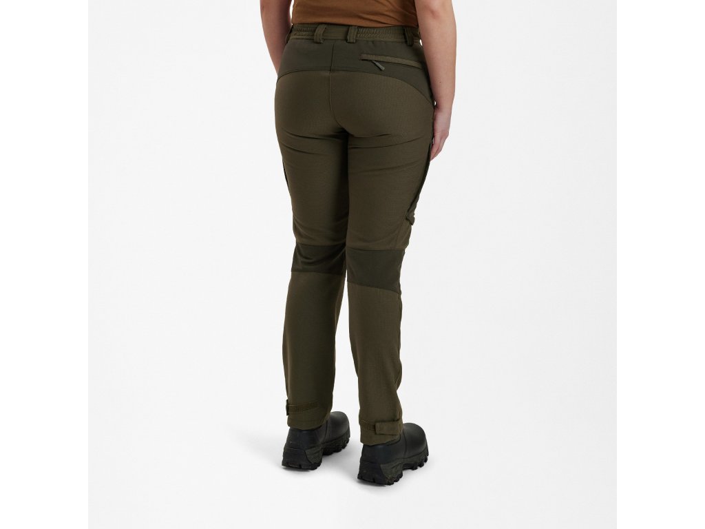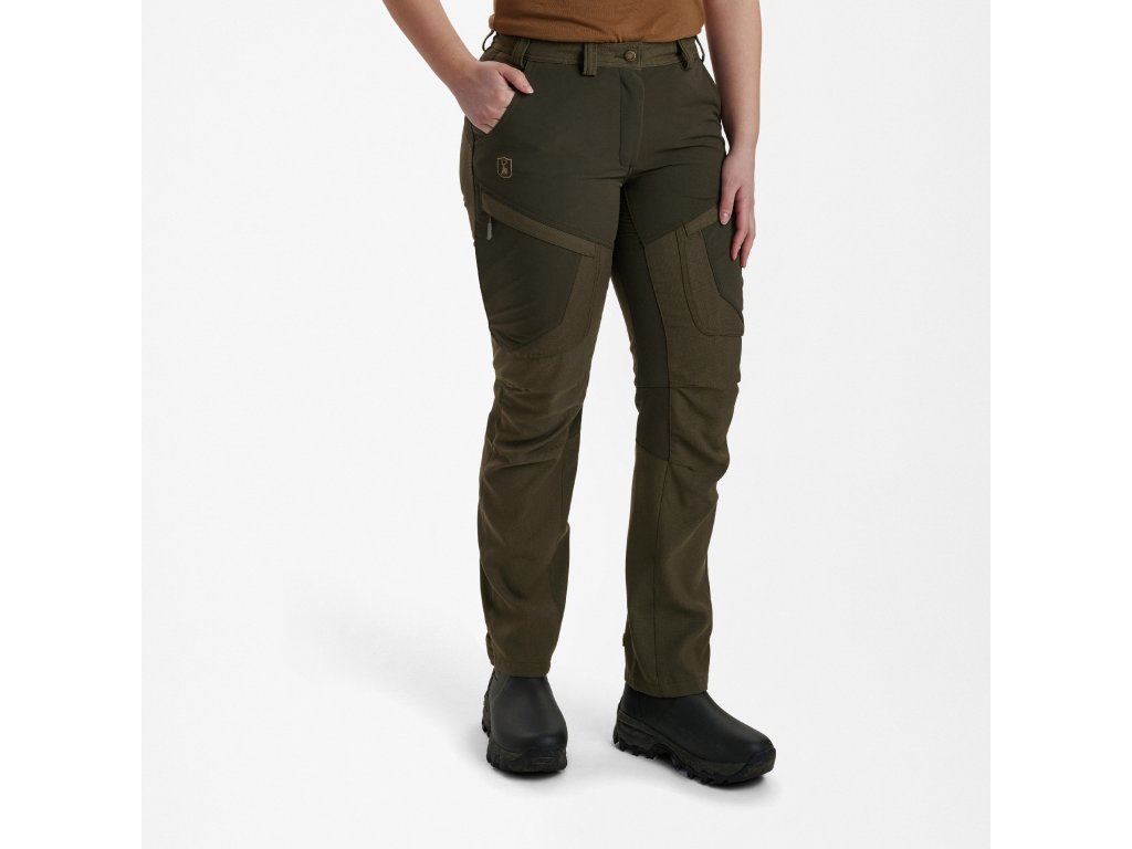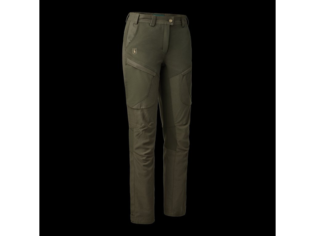 Nohavice DEERHUNTER Lady Ann Extreme s charakteristickým 4-smerným strečom ponúkajú vodeodolnú flexibilitu a slobodu pohybu. Vďaka množstvu funkčných vreciek ponúkajú dostatok úložného priestoru na poľovnícke vybavenie a outdoorové potreby, takže sa do nich zmestí všetko. Elastický panel v páse, ako aj predtvarované kolená a nastaviteľné popruhy na členkoch zaisťujú optimálne prispôsobenie.Dodatočné parametre