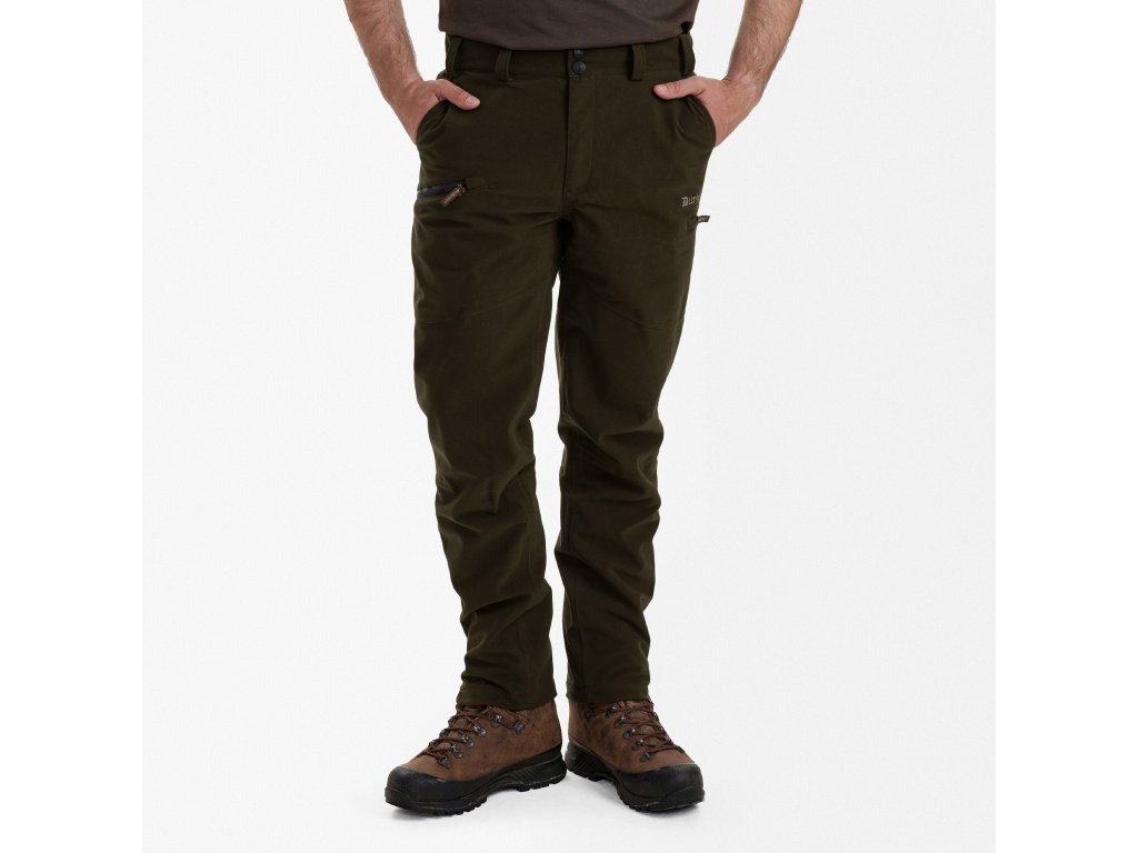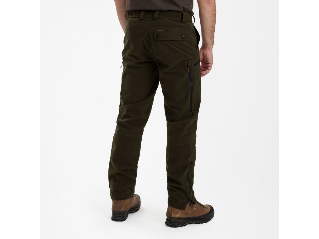 Nohavice Pro-Gamekeeper sú odolné a zároveň funkčné. Tieto nohavice sú vodeodolné, vetruodolné, priedušné a dokonca aj odolné voči tŕňom, čím vás chránia pred vetrom, dažďom a mnohými drsnými terénmi, s ktorými sa môžete stretnúť na svojich dobrodružstvách. Vďaka elastickej tkanine vám zaručujú flexibilitu a pohodlie. Vrecko na stehne, zadné vrecká, vrecko na nôž a manžety na nohaviciach majú vodeodolné zipsy vrátane zadnej časti nohavíc pre zvýšené vetranie počas aktivity. Pre extra spevnenie sme pridali až 3 vrstvy látky, ako aj vodoodpudivú úpravu v spodnej časti nohavíc a priedušnú sieťovanú podšívku v zvyšku, takže vám nedávame žiadnu výhovorku, aby ste si ich nezbalili na svoje outdoorové výpravy. Strih nohavíc Pro-Gamekeeper dopĺňajú dve predné vrecká, tvarované kolená, zadné vrecko s klopou na vrecku a zadný elastický pás, ktoré ponúkajú praktickosť a zároveň štýlový vzhľad.Dodatočné parametre