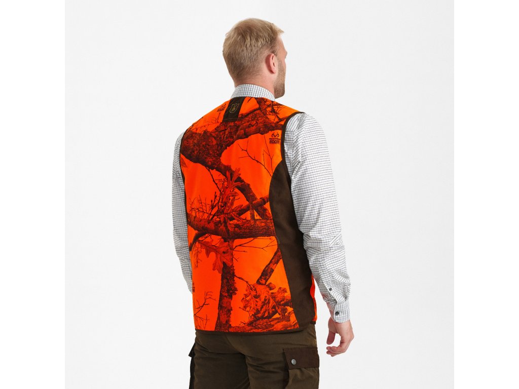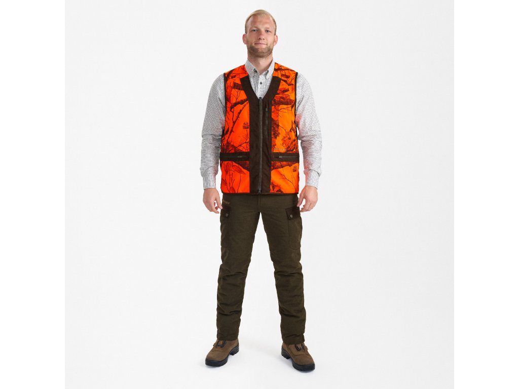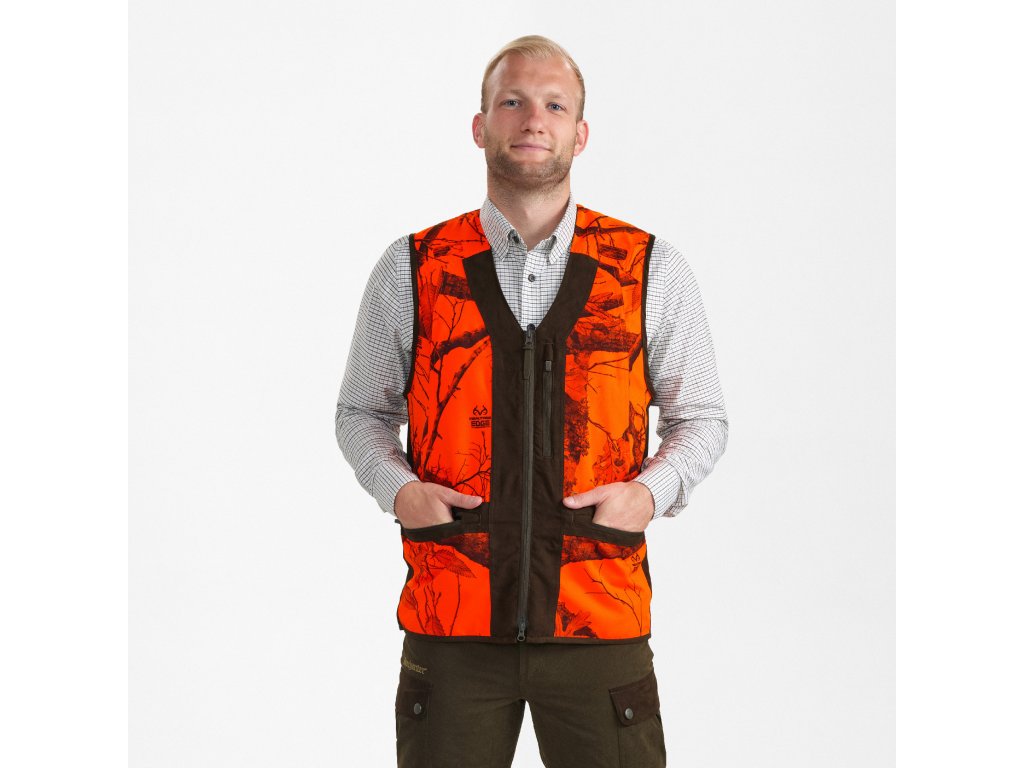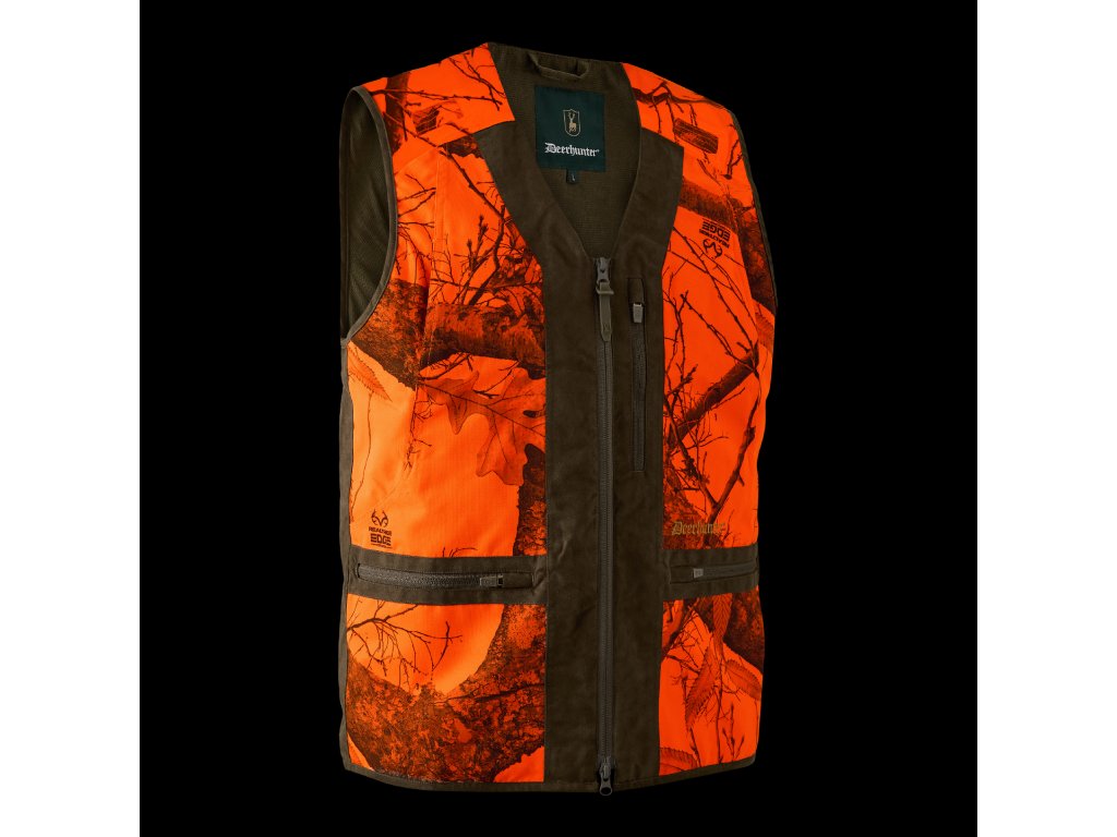 Vesta Eagle v oranžovej farbe REALTREE EDGE® je ideálna na poľovačky. Efektívny maskáčový vzor s prírodnými prvkami usporiadanými v špecifickom vzore, ktorý narúša ľudskú postavu z diaľky, zapadá do širokej škály poľovníckych prostredí. V kombinácii s výraznou farbou, ktorá robí poľovníka viditeľným pre ostatných, spĺňa potreby špecifických poľovníckych štýlov a požiadaviek. Detaily z umelého semišu umocňujú jej klasický poľovnícky štýl. Vďaka membráne DEERHUNTER Stormliner®, ktorá poskytuje vysokú úroveň priedušnosti, je ideálna na aktívne poľovačky za všetkých podmienok. Priedušná a vodoodpudivá s elegantným vnútorným panelom v prednom zapínaní pre väčšiu šírku, vesta Eagle je všestranný poľovnícky odev, ktorý sa dá nosiť ako vrchné oblečenie cez akúkoľvek poľovnícku bundu pri poľovačkách v chladnom počasí alebo samostatne pri medzisezónnych podmienkach. Je navrhnutá s funkčnými prvkami, ako sú popruhy na pripevnenie vysielačky, ako aj praktické predné a náprsné vrecká na jednoduché nosenie poľovníckych nevyhnutností a vrecko na lov s prístupom z oboch strán. Všestranný kúsok pre náročného poľovníka, je perfektným doplnkom vášho nevyhnutného poľovníckeho šatníka.Dodatočné parametre