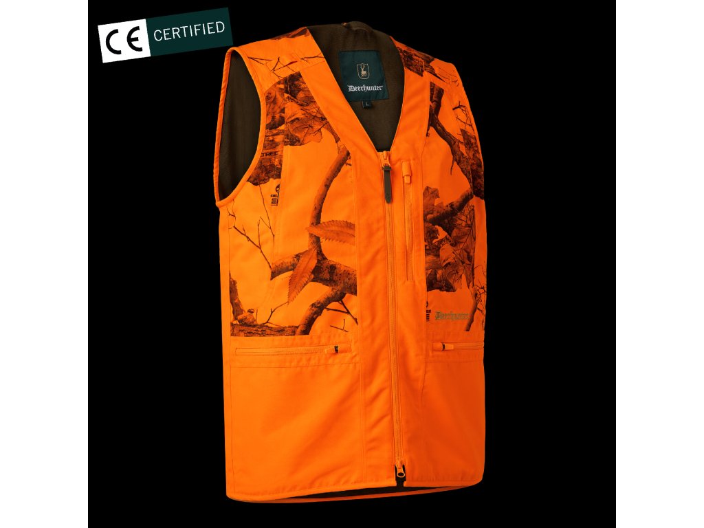 Vesta Eagle je vyrobená pre viditeľnosť, mobilitu a inteligentné úložné priestory, ideálna, keď potrebujete ochranu jadra bez toho, aby ste boli objemná ako bunda. Oranžová vesta má označenie CE a certifikáciu PPE CAT II pre zvýšenú bezpečnosť. Membrána DEERHUNTER® Stormliner® ponúka vetruodolnosť a priedušnosť, zatiaľ čo úprava BIONIC FINISH® ECO zvyšuje odolnosť voči vode. Medzi jej vlastnosti patrí obojsmerný predný zips, popruhy na pripevnenie vysielačky a predný rozširujúci panel pre väčšiu šírku. Vďaka viacerým vreckám na zips vrátane vrecka na lov a vnútorného úložného priestoru s podšívkou zo sieťoviny je táto vesta pripravená na prenášanie výbavy a zároveň vám zaistí ľahký pohyb.Dodatočné parametre