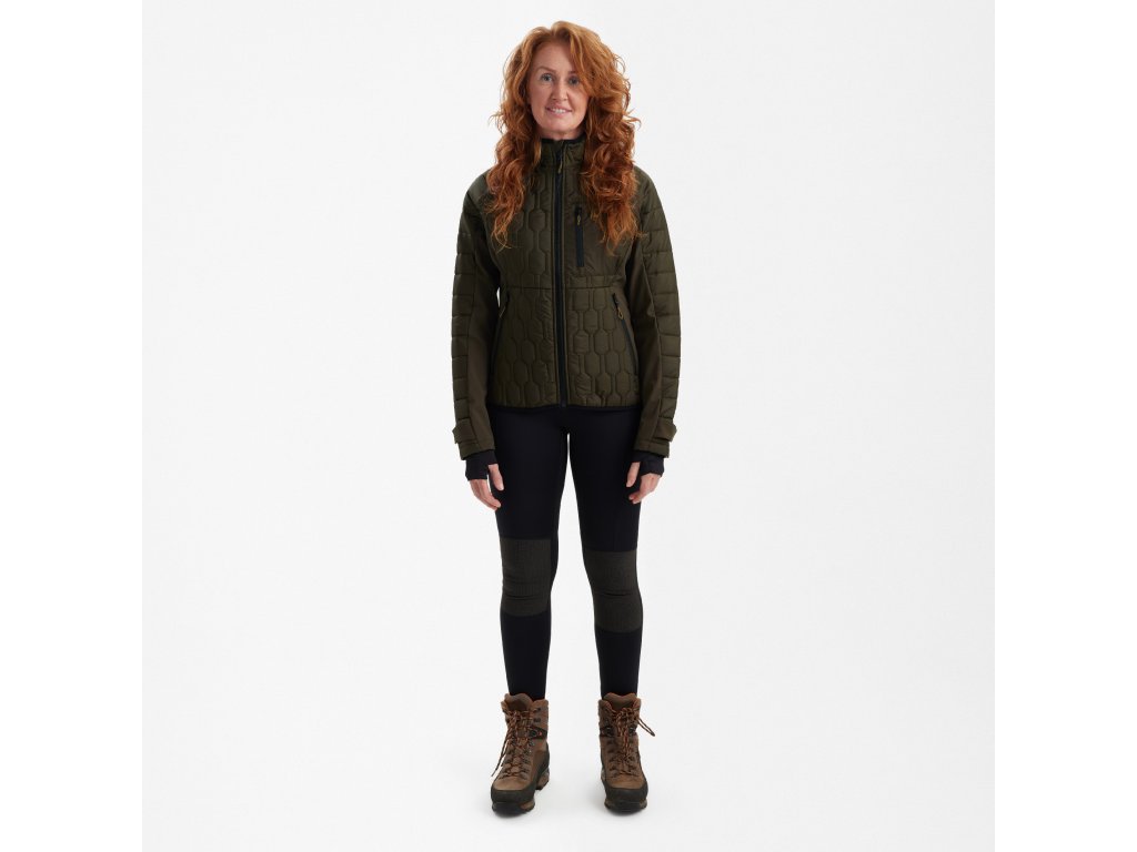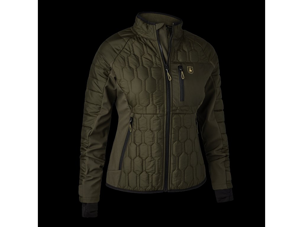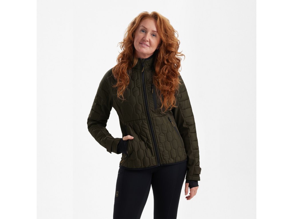 Moderná verzia klasickej prešívanej bundy, prešívaná bunda DEERHUNTER Lady Mossdale Quilted sa vyznačuje výrazným vzorom z prešívanej a softshellovej tkaniny s regenerovaným polyesterom pre maximálne pohodlie a teplo. Táto vodeodolná, zateplená bunda s manžetami proti vetru je ideálna na outdoorové aktivity alebo každodenné dobrodružstvá. S dostatkom vreciek na každodenné nosenie je praktická aj štýlová.Dodatočné parametre