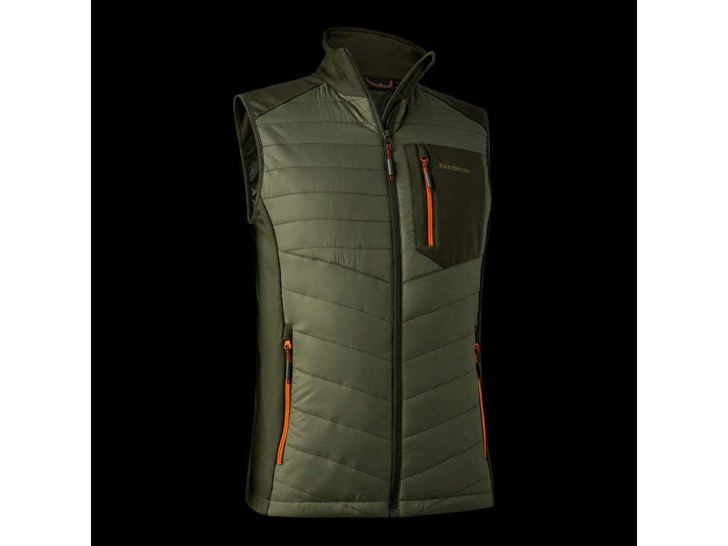 Vesta Chamois Padded Vesta ponúka teplo bez obmedzenia pohybu – ideálna na vrstvenie alebo samostatné nosenie. Je vybavená výplňou DEER-TEX® Temp v prešívaných predných a zadných paneloch, ktoré udržiavajú teplo, zatiaľ čo zóny strečovej látky v 4 smeroch zaisťujú pohodlie a flexibilitu. Je ošetrená vodeodolnou úpravou, ktorá pomáha chrániť pred ľahkou vlhkosťou. Skryté náprsné vrecko a dve predné vrecká na zips udržia vaše nevyhnutnosti poruke a elastické lemovanie prieramkov prispieva k bezpečnému a pohodlnému noseniu. Táto vesta s charakteristickými oranžovými detailmi spája izoláciu s mobilitou pre moderného poľovníka.Dodatočné parametre