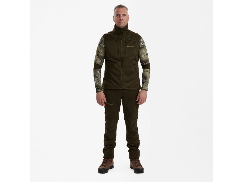 Či už ste v teréne alebo sa obliekate do mesta, vesta Excape Softshellová je módna aj funkčná. K dispozícii je v dvoch farbách, ktoré vyhovujú vašim potrebám: Art Green pre decentný vzhľad alebo maskáčová verzia Realtree Excape, ktorá vám umožní skryť sa. Dve náprsné vrecká a dve predné vrecká majú vodeodolné zipsy a zosilnený výstup pre rádiovú anténu poskytuje množstvo úložných priestorov. Hlavný centrálny zips je obojsmerný zips YKK, ktorý umožňuje jednoduchý prístup k spodnej bielizni. Softshellová vesta, vytvorená kombináciou vodeodolnej oblasti krku a ramien a častí z prírodných látok, ponúka kombináciu textúry, priedušnosti a vodeodolných priestorov. Nemusíte sa obávať žiadneho zvýšenia hluku ani pohodlia, aj napriek všetkým týmto vlastnostiam zostáva vesta Excape Softshellová pri nosení mäkká a tichá.Dodatočné parametre