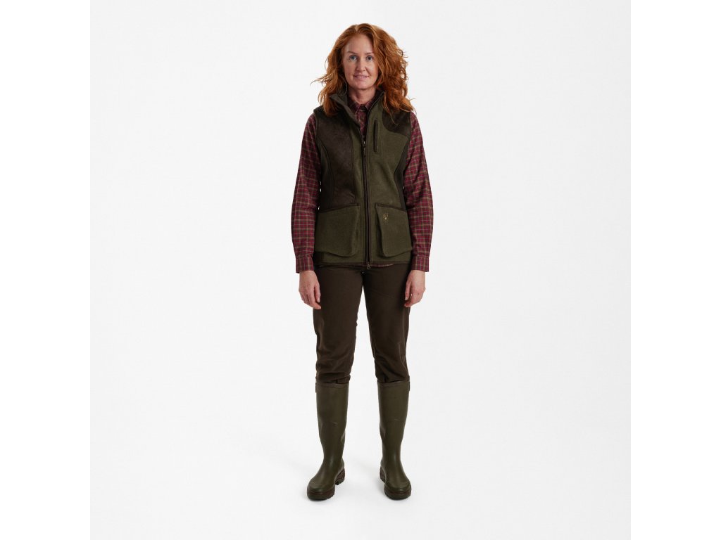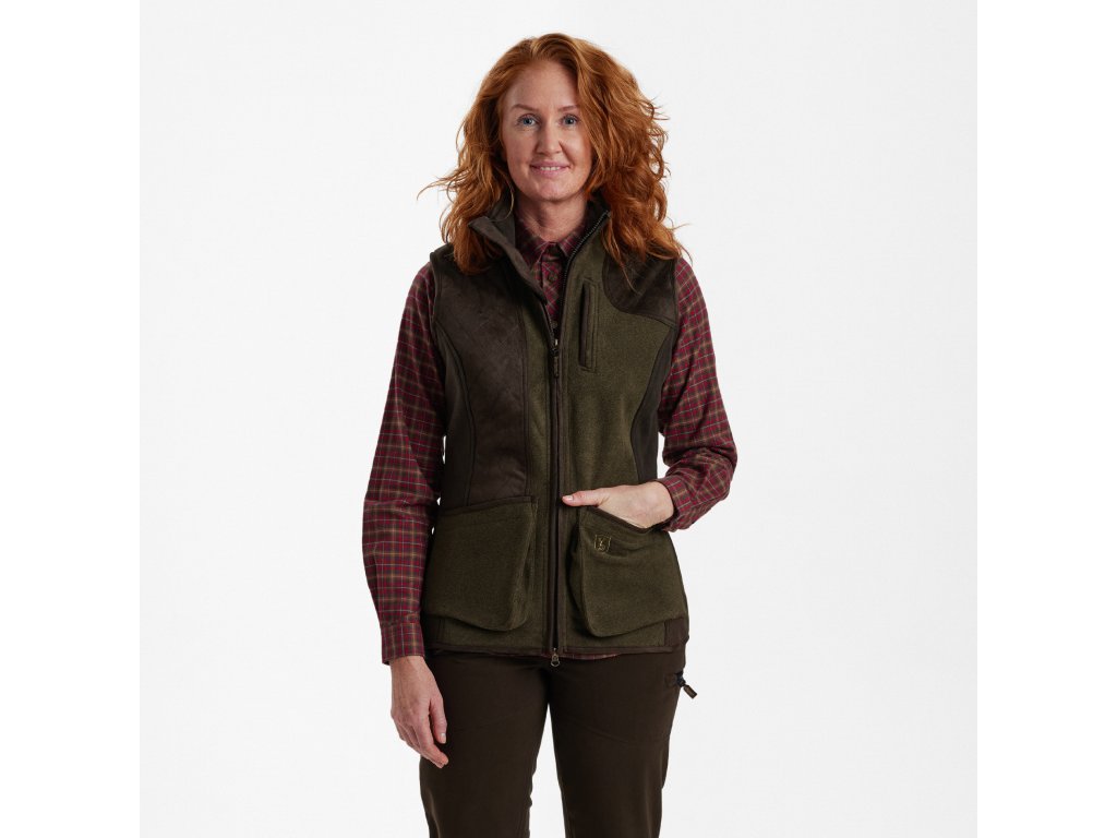 Funkčná a módna vesta Lady Pam Shooting je priedušná, vetruodolná a vodeodolná. Vďaka vnútornému polstrovaniu na ochranu ramien, nastaviteľnému pásu vzadu, dvom predným vreckám a skrytým zipsom na vrecku na lov a náprsnom vrecku je táto vesta viac než praktická.Dodatočné parametre