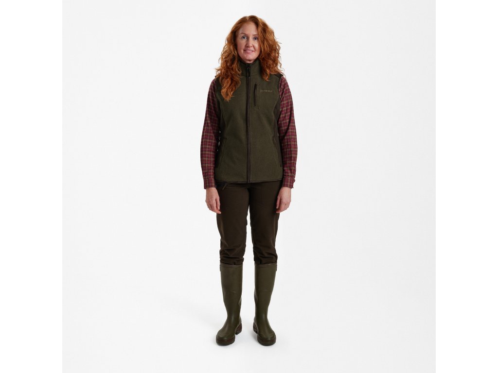 Vesta Lady Pam Bonded Fleece je pohodlná a priedušná, vhodná na akúkoľvek outdoorovú aktivitu. Vďaka technológii DEERHUNTER Stormliner vám zaručí, že vám nebude zima. Náprsné vrecko a dve predné vrecká dodávajú tejto veste funkčnosť a veľké vrecko na lov so skrytým zipsom dopĺňa možnosti vonkajšieho úložného priestoru. Vesta Lady Pam Bonded Fleece má tiež dve vnútorné vrecká určené na bezpečné uloženie vašich cenností. Lemovanie z umelého semišu zvyšuje pohodlie a dotvára štýlový vzhľad tejto všestrannej vesty.Dodatočné parametre