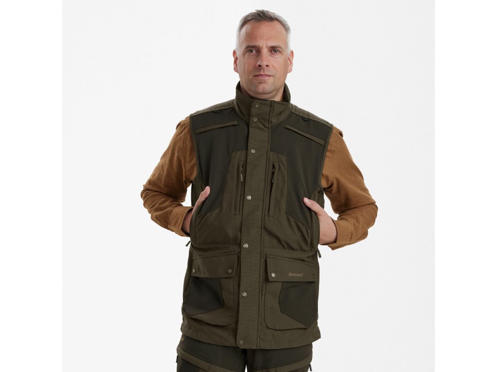 Vesta Strike Extreme sa pýši štýlom, všestrannosťou a zároveň zostáva funkčná pre všetky vaše aktivity. Je ideálna na deň v teréne s pridanými funkciami na prenášanie poľovníckej výbavy alebo rovnako štýlová pre ležérny vidiecky vzhľad. Náprsné vrecká, vrecká na odkladanie vecí a veľké vrecko na lov vzadu sú len niektoré z možností úložného priestoru, ktoré táto vesta ponúka. Vďaka 4-smerným elastickým častiam a nastaviteľnému spodnému dielu so sťahovacou šnúrkou ponúka vesta Strike Extreme vynikajúcu mobilitu a skutočne pohodlné nosenie.Dodatočné parametre