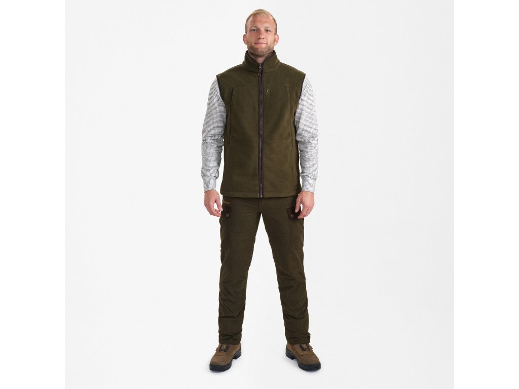 Praktická flísová vesta Eagle Fleece s elastickým materiálom je súčasťou série poľovníckych vestí Eagle a vyznačuje sa elegantnými detailmi z imitácie semišu, ktoré odrážajú tradičnejší poľovnícky štýl a dopĺňajú ostatné bundy a nohavice z tejto kolekcie. Vďaka jednoduchému elegantnému dizajnu a nastaviteľnému lemu so sťahovacou šnúrkou dobre padnú a praktické vrecká na zips poskytujú dostatok úložného priestoru na všetky poľovnícke nevyhnutnosti. Táto praktická flísová vesta, ktorá je nevyhnutnou súčasťou každého outdoorového šatníka, ponúka dodatočnú izoláciu ako stredná vrstva počas chladnejších mesiacov. Môže sa použiť aj ako ďalšia vrstva tepla, ktorá spríjemní chladné skoré rána alebo chladné večery.Dodatočné parametre