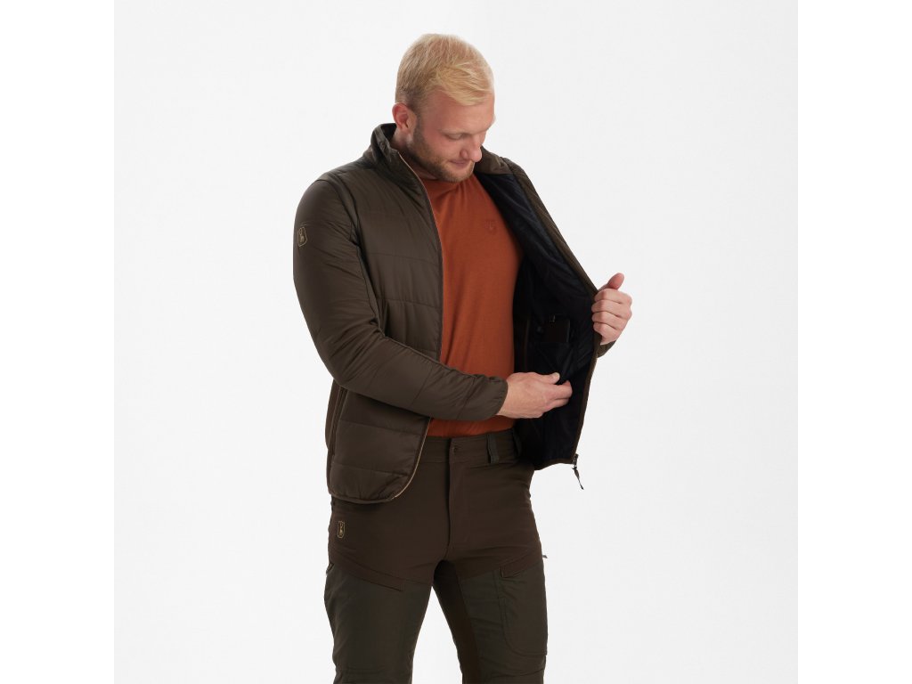 Kombináciou najlepších materiálových inovácií, dizajnu zameraného na funkčnosť a textilnej technológie poskytuje vyhrievaná bunda DEERHUNTER optimálne pohodlie a teplo poľovníkovi, keď to najviac potrebuje. Poskytuje pohodlie v chladnom počasí stlačením tlačidla a je súčasťou high-tech série HEAT od DEERHUNTER s inteligentným integrovaným systémom vyhrievania, ktorý sa aktivuje ľahko dostupným tlačidlom ON/OFF v náprsnom vrecku, s nastaviteľnou intenzitou tepla, ktorú zobrazuje vstavaný LED indikátor. Z praktických dôvodov sa dá powerbanka ľahko odpojiť a vyprať v práčke. Je zateplená, s prešívanými panelmi na prednej, zadnej strane a rukávoch, s pridaným obojsmerným strečom pre väčšiu flexibilitu, takže je ideálna do chladných a priaznivých poľovníckych podmienok.Dodatočné parametre